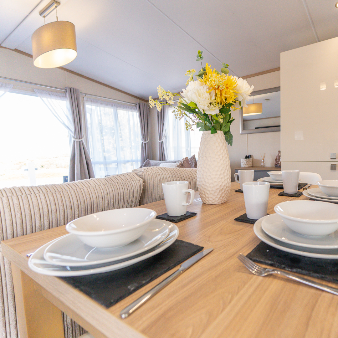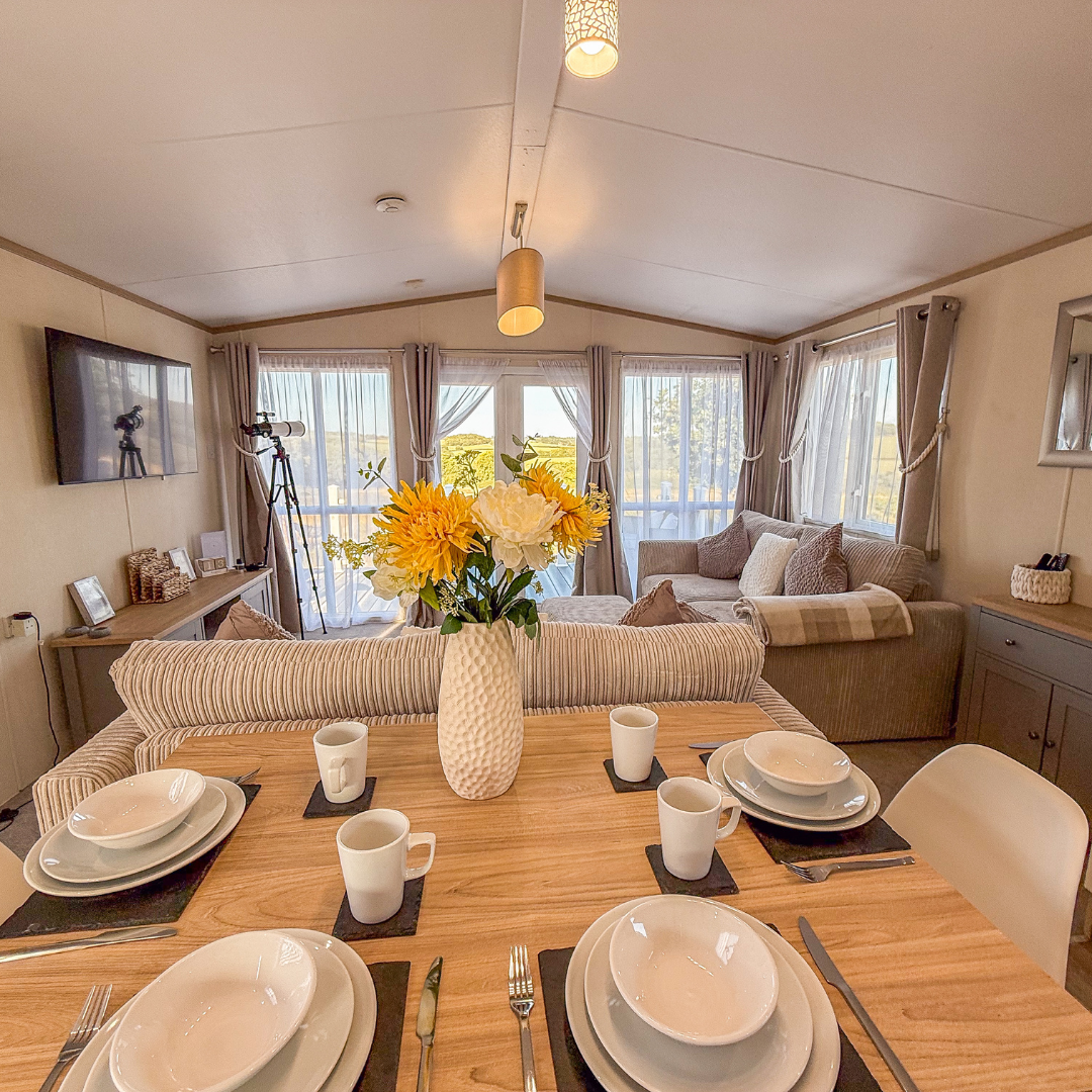 Inside, you’ll find a spacious open-plan living and dining area with comfy seating and large panoramic windows to make the most of the views.