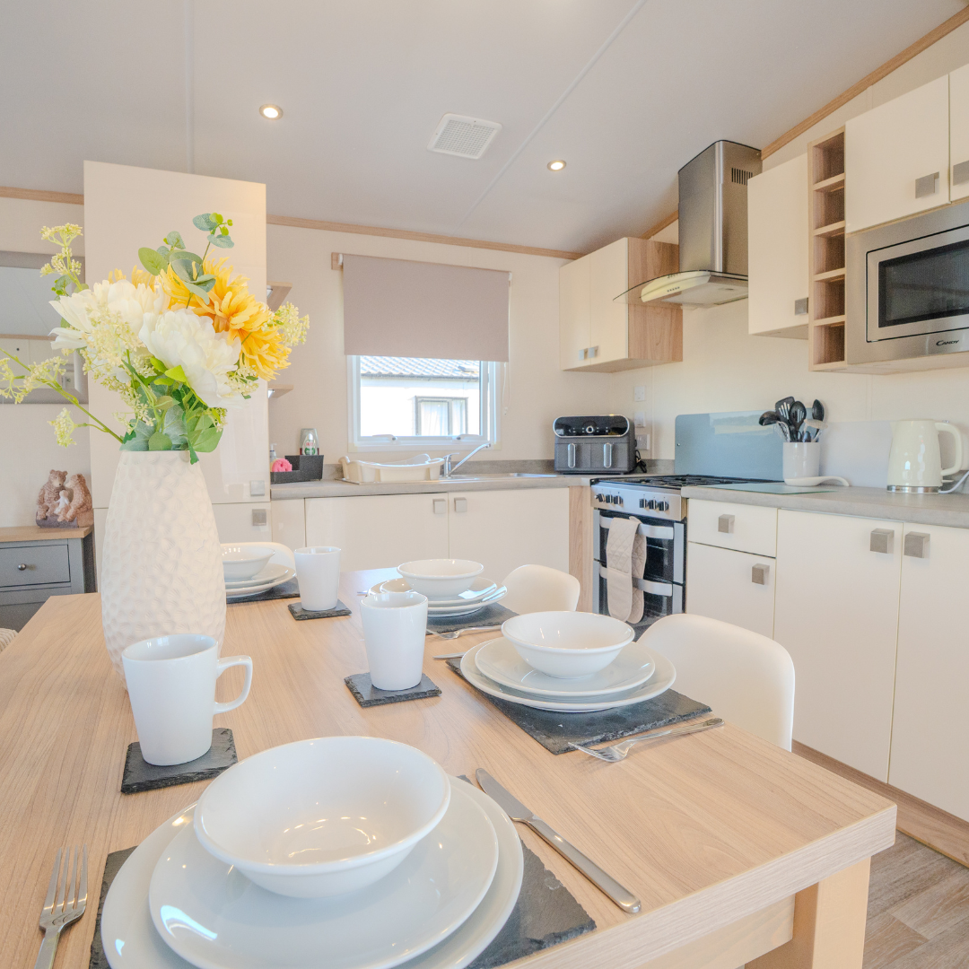 For convenience, there’s a main shower room plus a separate WC. Outside, relax on the decking and soak in the sea air, or take a short stroll down to the beach and park facilities.